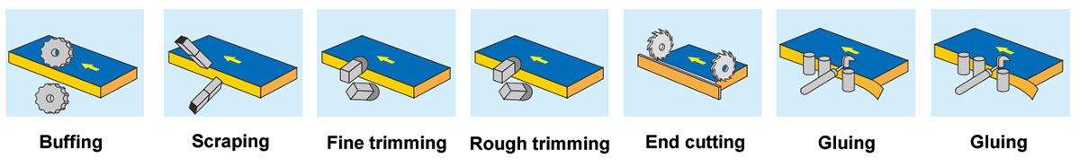 Las unidades de desbaste y recorte fino eliminan perfectamente los bordes sobresalientes superiores e inferiores, dando como resultado bordes lisos y sin rebabas.