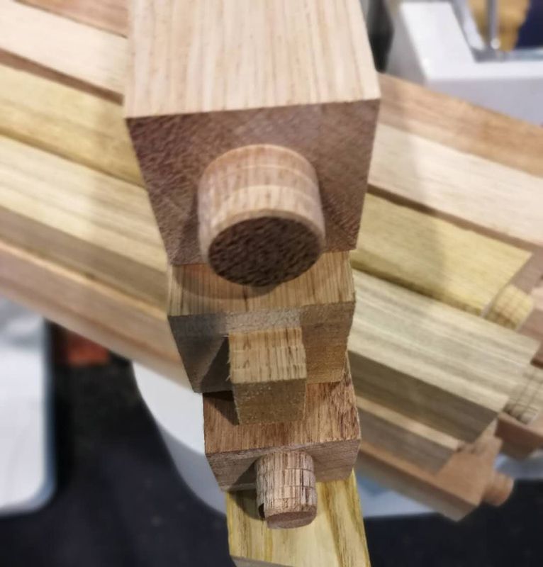 Tiene la capacidad de fabricar varios tipos de espigas, como espigas redondas, rectangulares, con clavijas, etc.